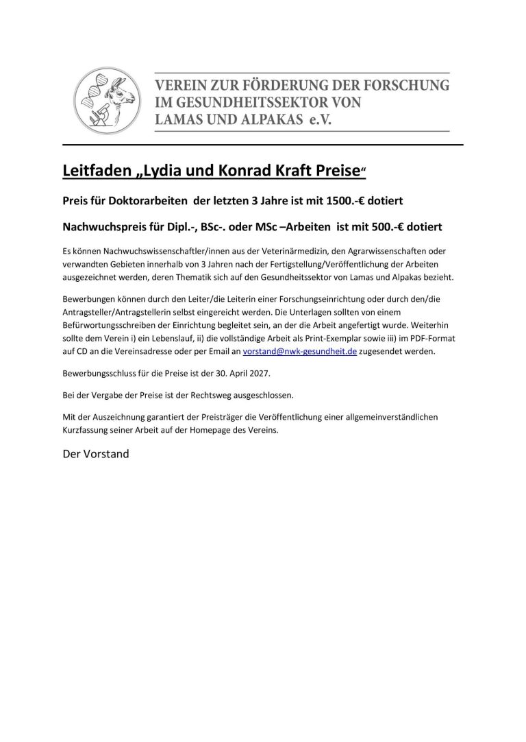 Leitfaden zur Vergabe des "Lydia und Konrad Kraft Preises"