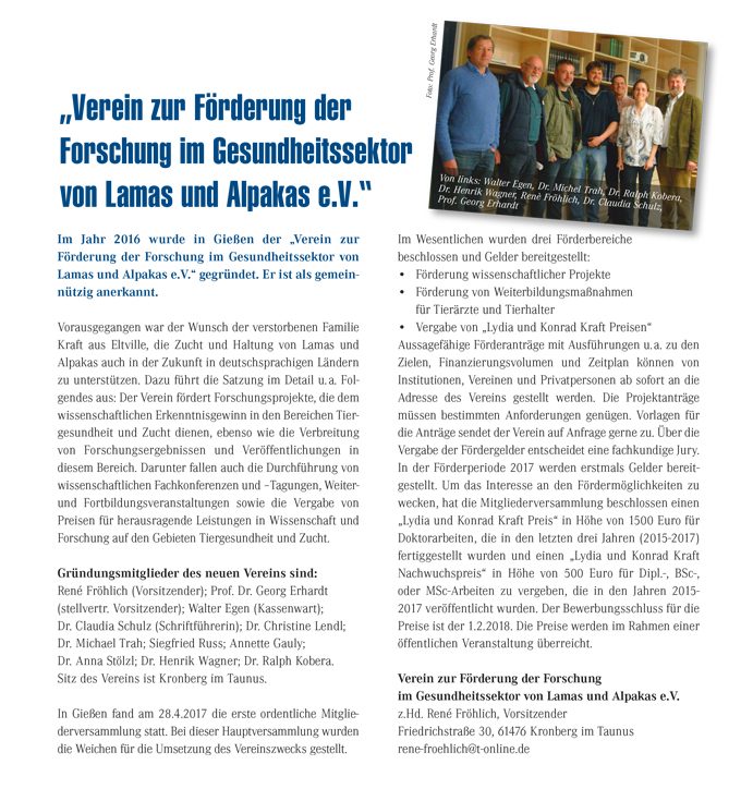 Offizielle Mitteilung des Vereins zur Förderung der Forschung im Gesundheitssektor von Lamas und Alpakas e.V.